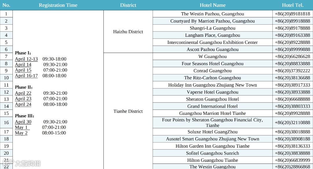 1. 酒店信息以广交会官网最新公布为准。