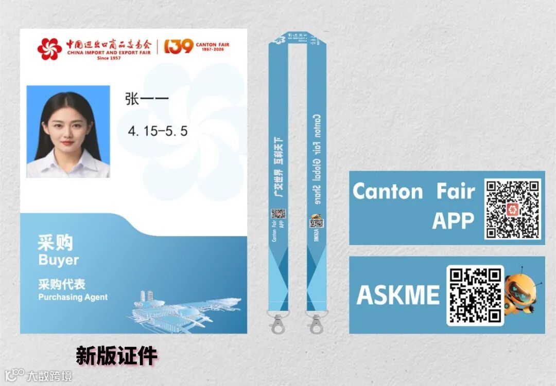 第139届广交会证件系统升级:版面设计优化,挂绳加宽提升佩戴舒适度;境外采购商随行助手及翻译人员统一办理"境外采购商陪同人员证",原采购代表证不再适用。具体流程请关注官方通知。