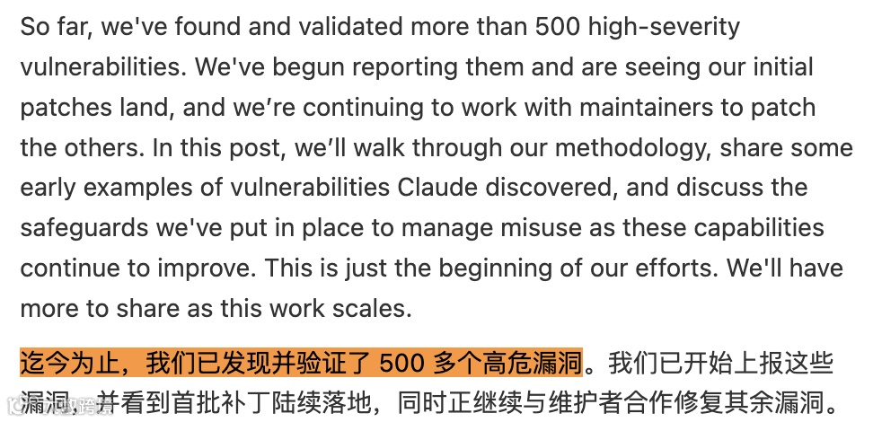 2026年2月,Anthropic前沿红队将漏洞挖掘推向新高度。其Opus 4.6模型在沙盒环境中,仅凭基础调试工具和通用提示词,人工验证超500个高危漏洞。项目负责人Logan Graham强调:"这是防御者与攻击者的竞赛,需尽快将工具交到防御者手中。"