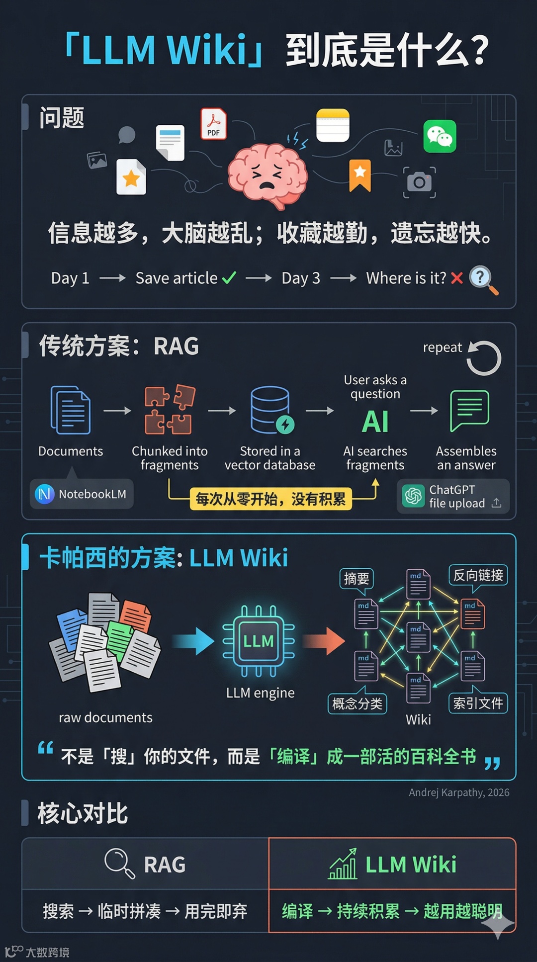 Karpathy强调LLM Wiki的四大优势,重构AI时代知识主权: