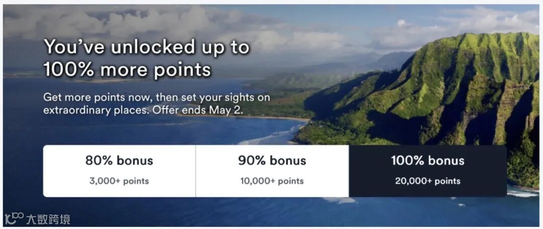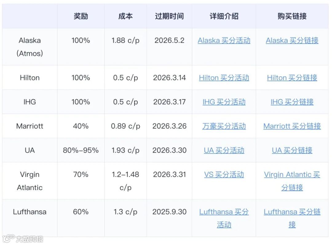 即日起至2026年5月2日,购买阿拉斯加航空里程可享额外奖励,最高100%额外积分(需登录查看详情)。
