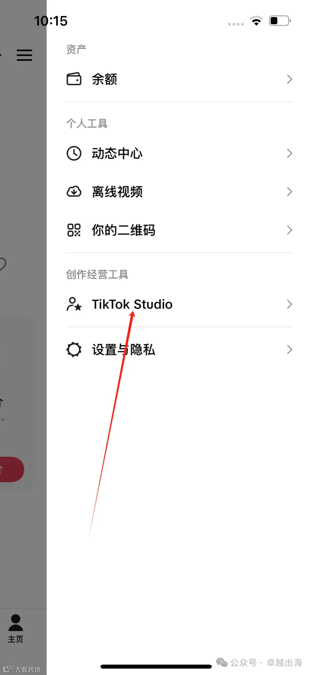 2. 选择 TikTok Studio,官方所有可以赚钱的东西都在Studio里面。