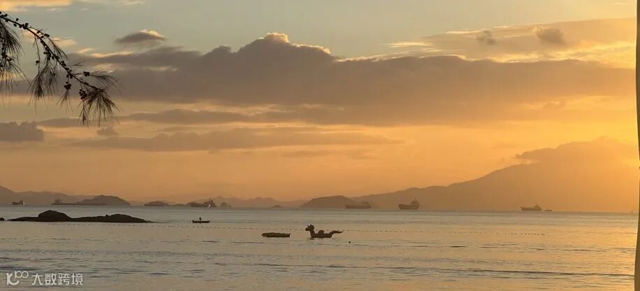 夕阳为沙滩镀上金边,