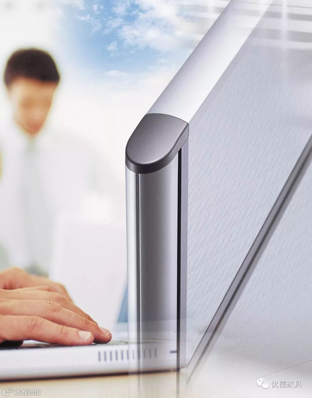 子弹头30款屏风,经典的设计,完善的功能体现,(A006063-T5)国内最优质铝材,表面采用阳极氧化(着色银白),氧化膜厚达15um,大面积使用环保材料氧化镁板。为全国泰康人寿、深圳腾讯总部等知名企业提供过优质环保的家具解决方案。