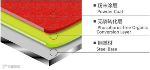 对于前处理方式现在已有了先进的无磷环保工艺,国内为数不多的行业领先企业也开始用这种表面处理技术。环氧树脂在颜色上千变万化,比起木制品在产品设计上的选择要大了许多。这种工艺让钢的基材得到了致密的保护不但让成品实现零污染还避免了生产过程中产生不利于健康的有害气体,故钢制品是真正意义上的全方位的绿色产品。