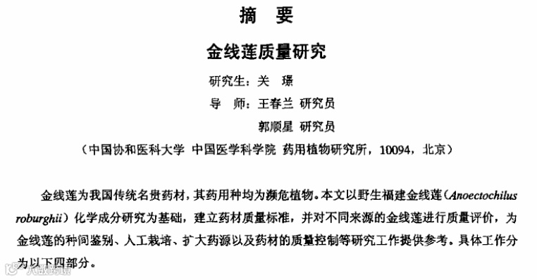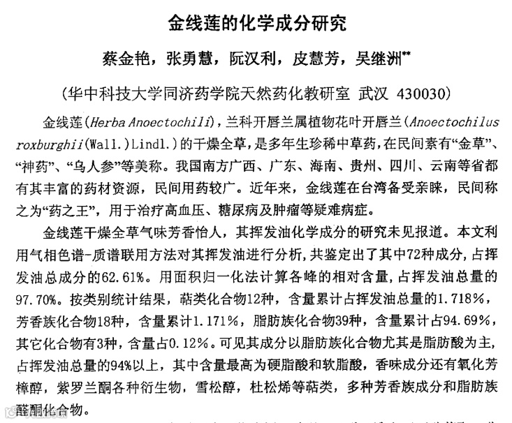 《金线莲的化学成分研究》单位:华中科技大学同济药学院