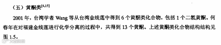 金线莲中含有种类繁多的黄酮类成分。早期专家从金线莲中提取出了6个黄酮类化合物,而随着研究的不断深入,又从中提取出了13个黄酮类化合物,充分显示了金线莲中黄酮类成分的丰富性和研究潜力。