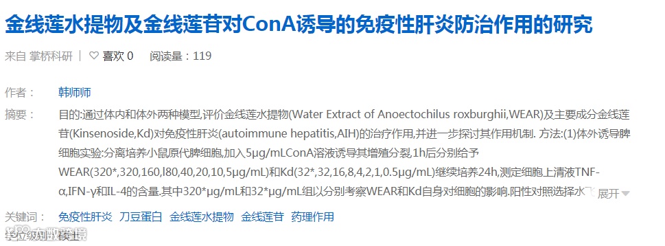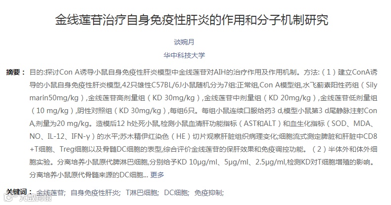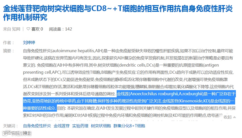 《金线莲苷治疗自身免疫性肝炎的作用和分子机制研究》