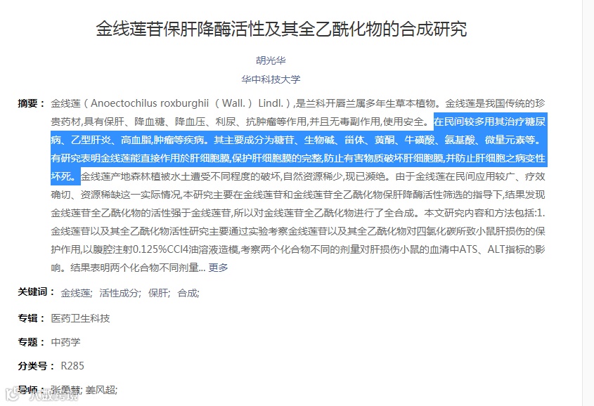 近年来,大量的论文聚焦到金线莲苷