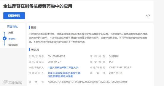 儒兰公司合作伙伴——福建中医药大学药学院吴岩斌副研究员团队《金线莲苷在制备抗疲劳药物中的应用》已获得相关专利。