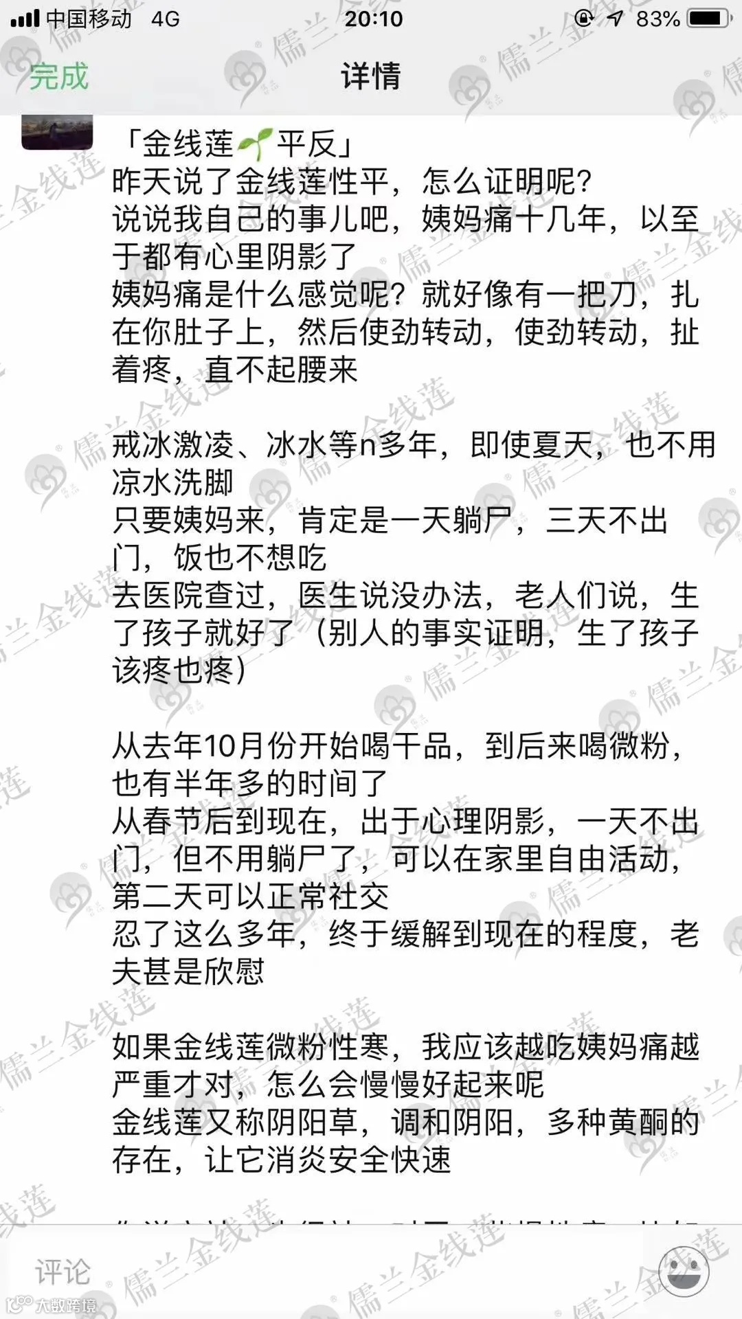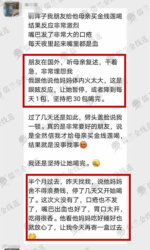 另外如果喝儒兰金线莲前期出现一些特殊症状,比如腹痛,拉肚子等等,要先排除是否是“瞑眩反应”。
