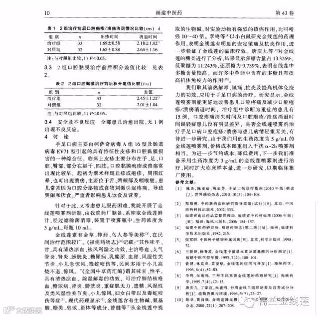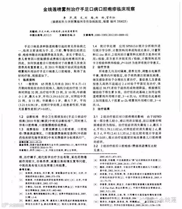 金线莲喷雾剂治疗手足口病口腔疱疹临床观察