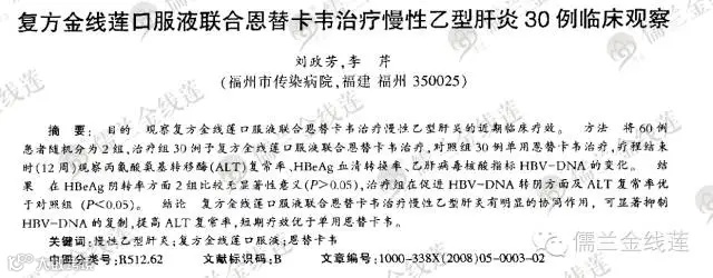 结论:复方金线莲口服液联合恩替卡韦治疗慢性乙型肝炎有明显的协同作用,可显著抑制乙肝病毒核酸指标(HBV—DNA)的复制,提高丙氨酸氨基转移酶(ALT)复常率(复常率指的是抗病毒治疗以后肝功能肝细胞的恢复比例),短期疗效优于单用恩替卡韦。