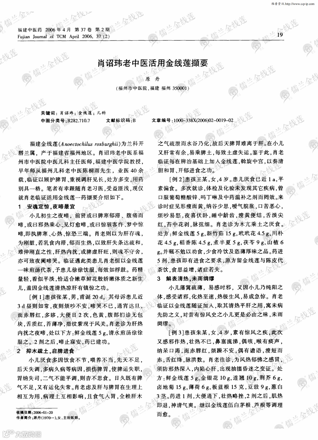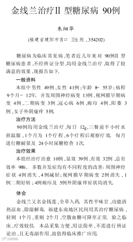 肖诏玮教授对金线莲的临床应用实践超过50年,用六个字概括了金线莲的神奇:平肝健脾补益。肖老说,平肝的药很多,健脾的药也很多,但同时能够做到平肝健脾的药,除了金线莲,的确非常少甚至是没有。