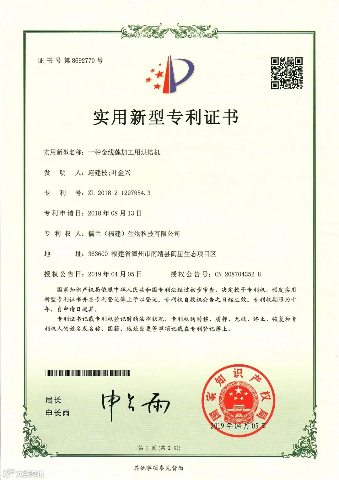 儒兰(福建)生物科技有限公司正式成立