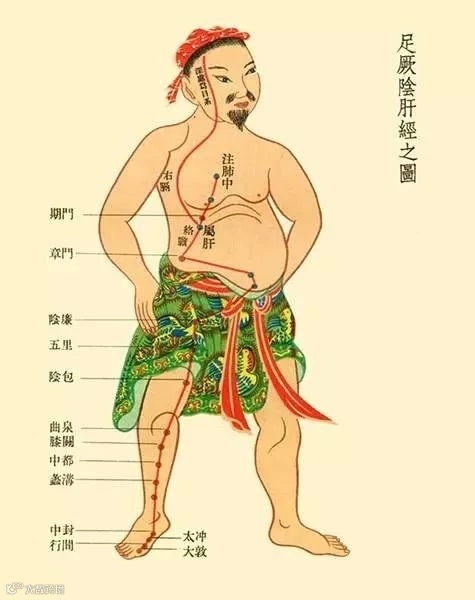 肝经起于足大拇指,从下往上绕阴部再到小腹(子宫),再经过胸部乳房,再到脖子甲状腺,再到脑部,最后与督脉会聚于头顶。