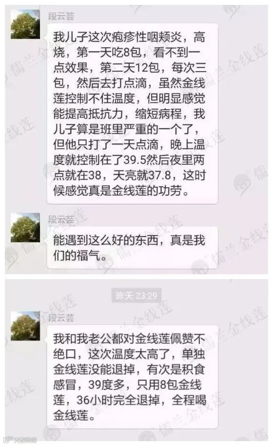 以下是妈妈们用儒兰金线莲对抗疱疹性咽峡炎病毒的过程分享: