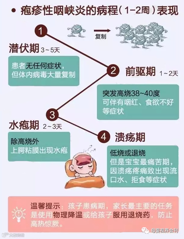 疱疹性咽峡炎的病程表现: