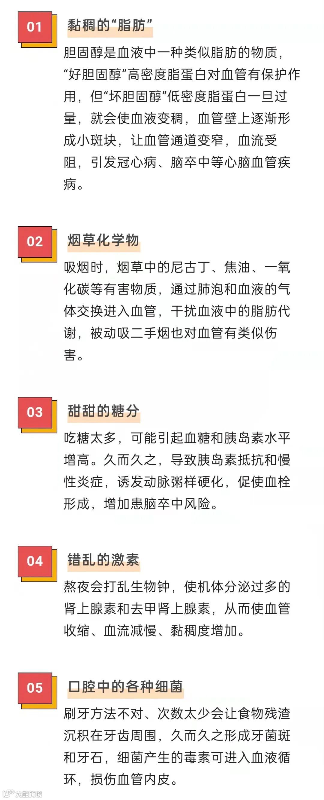血管变脆、弹性下降、堵塞等问题会诱发一系列血管疾病,严重的甚至可能导致猝死。