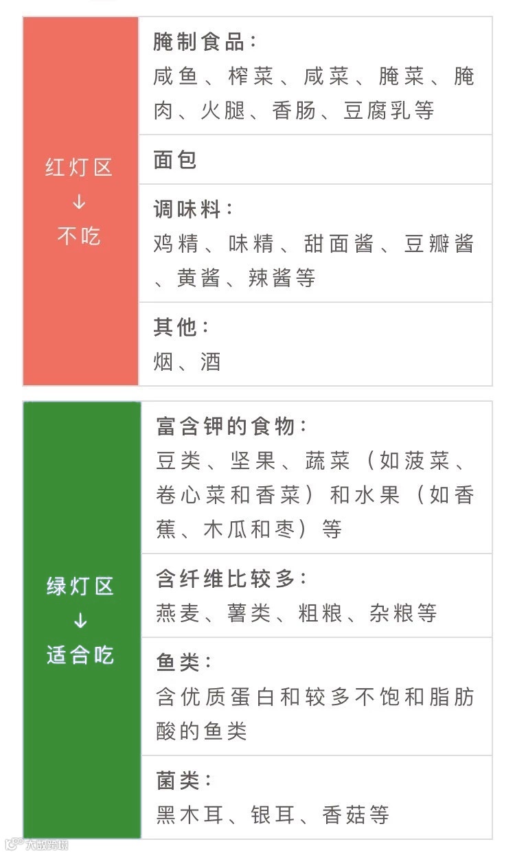高血压食物红绿灯表