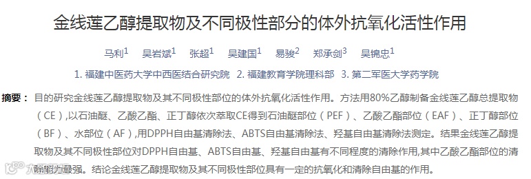 金线莲抗氧化(自由基)的学术研究