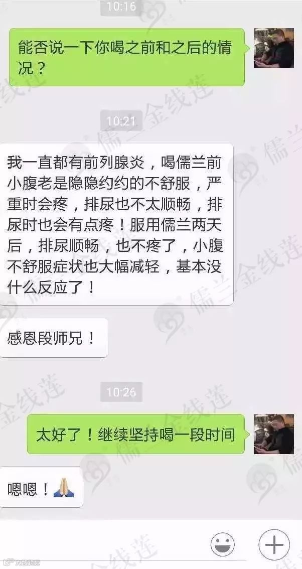前列腺炎喝儒兰金线莲后排尿顺畅也不疼了。