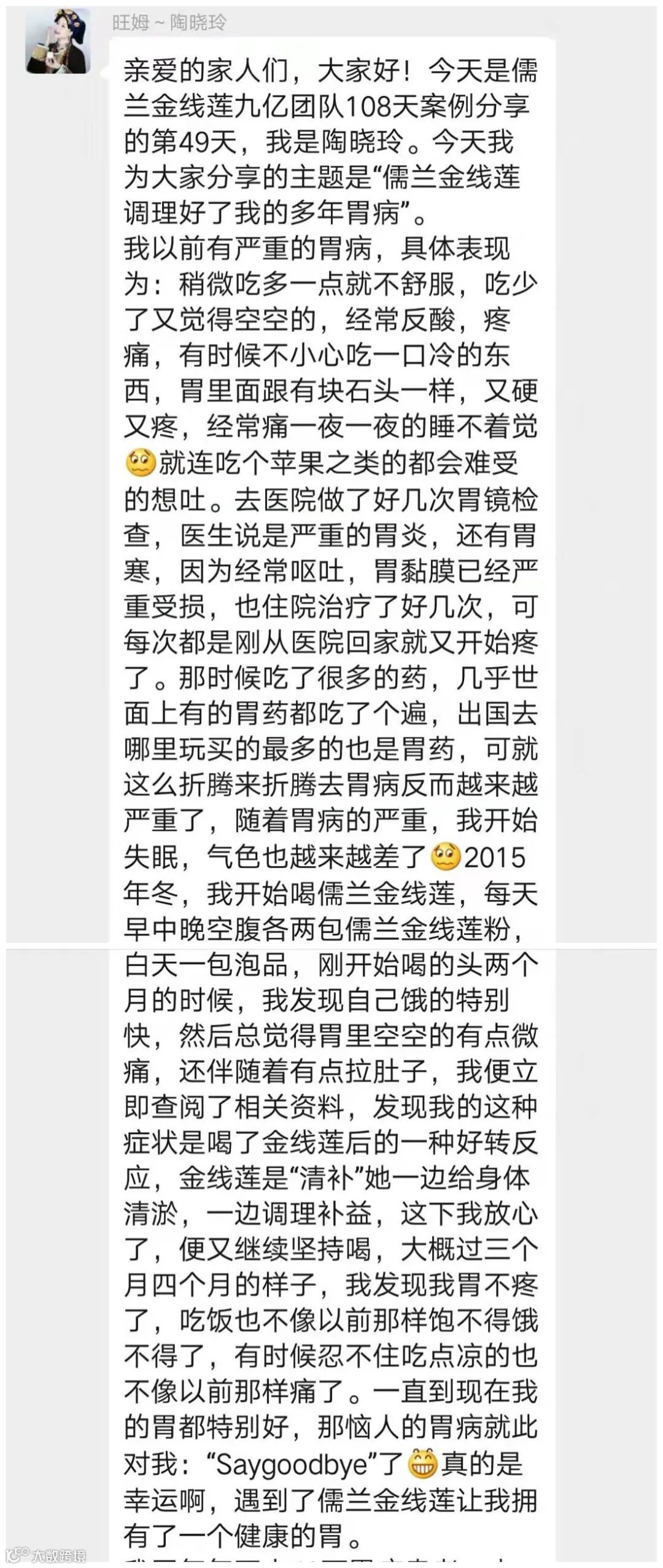 多年的胃溃疡,喝儒兰金线莲后,没有溃疡,只剩下一点炎症。