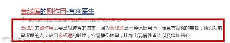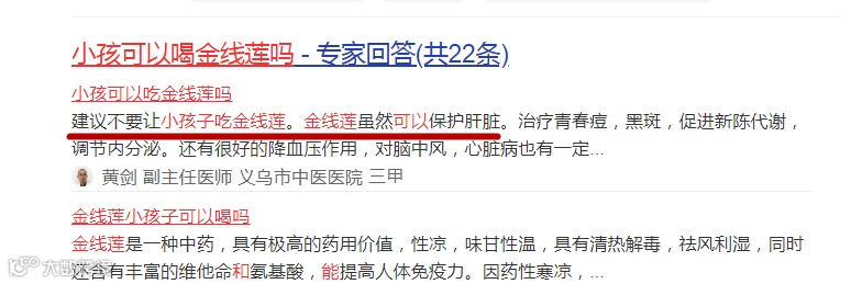 首先,大家必须知道的是,百度营收来源主要是广告,占比最高的是医疗广告,其具有颠覆性的“竞价排名”规则,金钱衡量一切,因此,你问度娘之外,还需要独立思考和判断;其次,金线莲还只是一个很小的行业,迄今为止,连行业标准都没有,自身法规定性尚待进一步明确,正规公立医院几乎还没有临床应用,至少还没有大规模临床应用,全国范围内,具临床应用经验的医生还很少。这样的背景下,对金线莲就是部分以医生自称的“专业人士”对金线莲不了解、一知半解、误解都很正常。