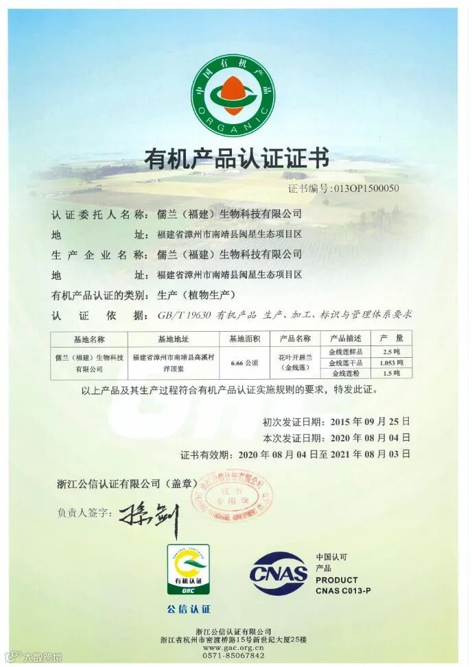 你见过有机产品认证证书吗?