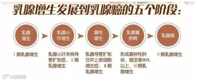 一旦内分泌失调,卵巢分泌的雌激素水平过高,黄体孕激素过低,很可能会出现乳腺增生。