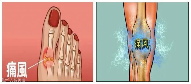 “痛”指疼痛,“风”指像风一样迅速出现症状,痛风发病前可无任何征兆,疼痛在短时间内迅速达到高峰,疼痛缓解快,急性发作期可出现明显的单关节如足第一趾跖关节、踝关节等部位红肿热痛,痛如刀割或咬噬样。
