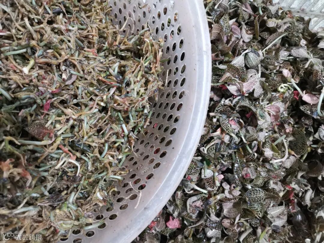 金线莲市场流通主要以全草(全株)或者全株加工品(泡品、儒兰超微粉)为主,少部分以“金线莲叶子”做为产品销售。金线莲叶子来源于金线莲组培后剩下的叶子(金线莲接种也就是无性繁殖,只需要茎段),纯叶子价格比全草便宜,大约为全草的6-7折。