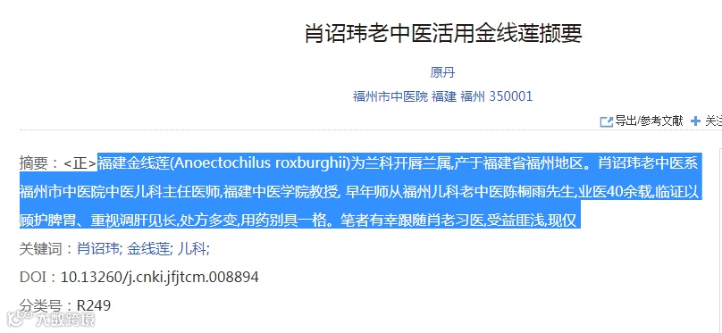 2006年《福建中医药》 :肖诏玮老中医活用金线莲擷要