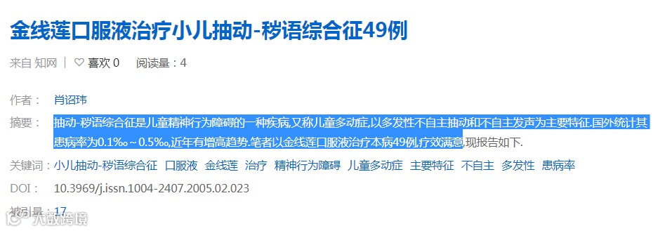 2005年02期《西北药学杂志》 :金线莲口服液治疗小儿抽动-秽语综合征49例