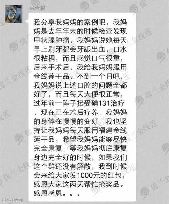 儒兰金线莲关于甲状腺相关案例
