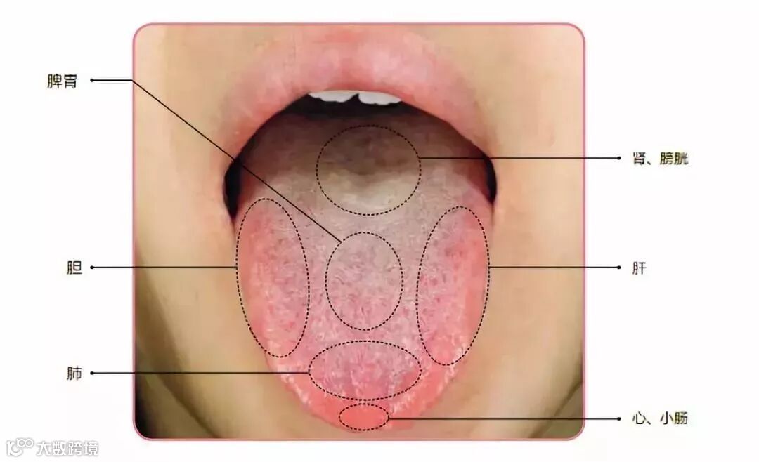 我们先来看舌头的各个部位都对应身体的哪些器官:舌左侧对应肝,右侧对应胆,舌尖到舌中部之间的位置对应心、小肠、肺,舌中间的部分对应脾胃,舌中间到根部的位置对应的是肾、膀胱。
