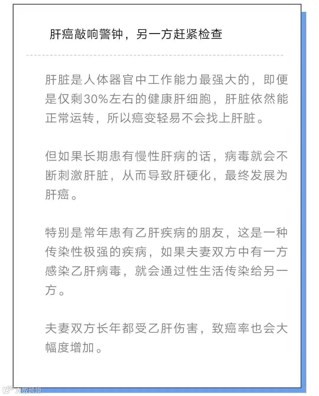 由于癌症的主要病发原因是细胞病变,所以癌症并没有传染性,但在饮食、生活习惯相同的情况下,却会导致"夫妻癌"的出现!