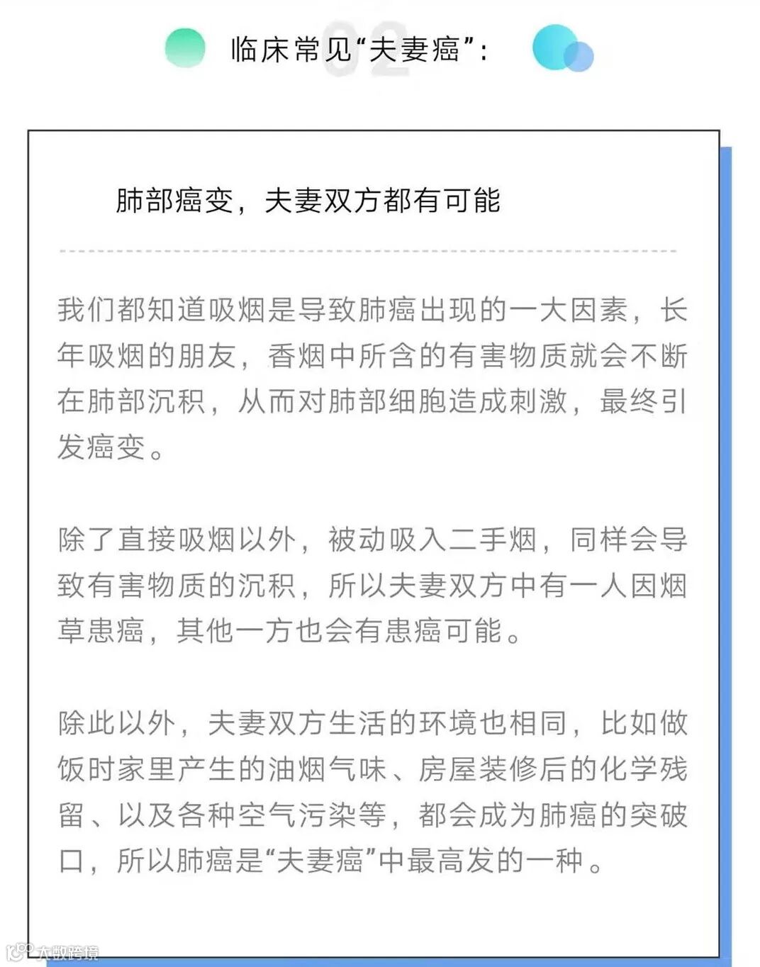 其实所谓的“夫妻癌”是肿瘤学领域,根据病发方式来得出的名称。