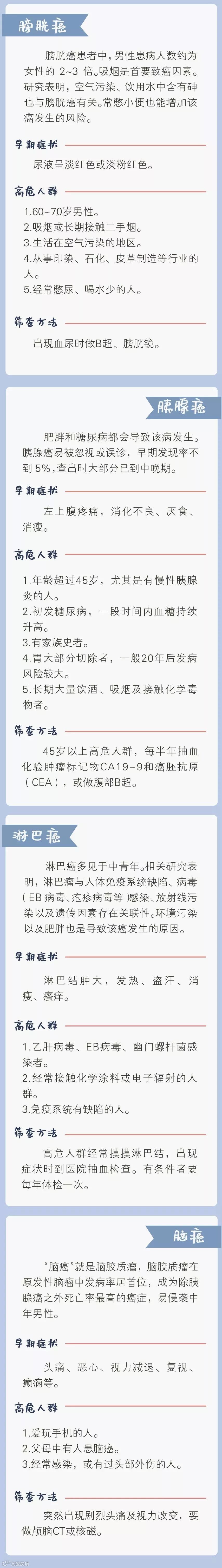 癌症是一种慢性病,从发病到晚期一般需要5~20年,有癌症家族史的人群做好早期肿瘤筛查,早预防、早干预,就能延缓或预防癌症。