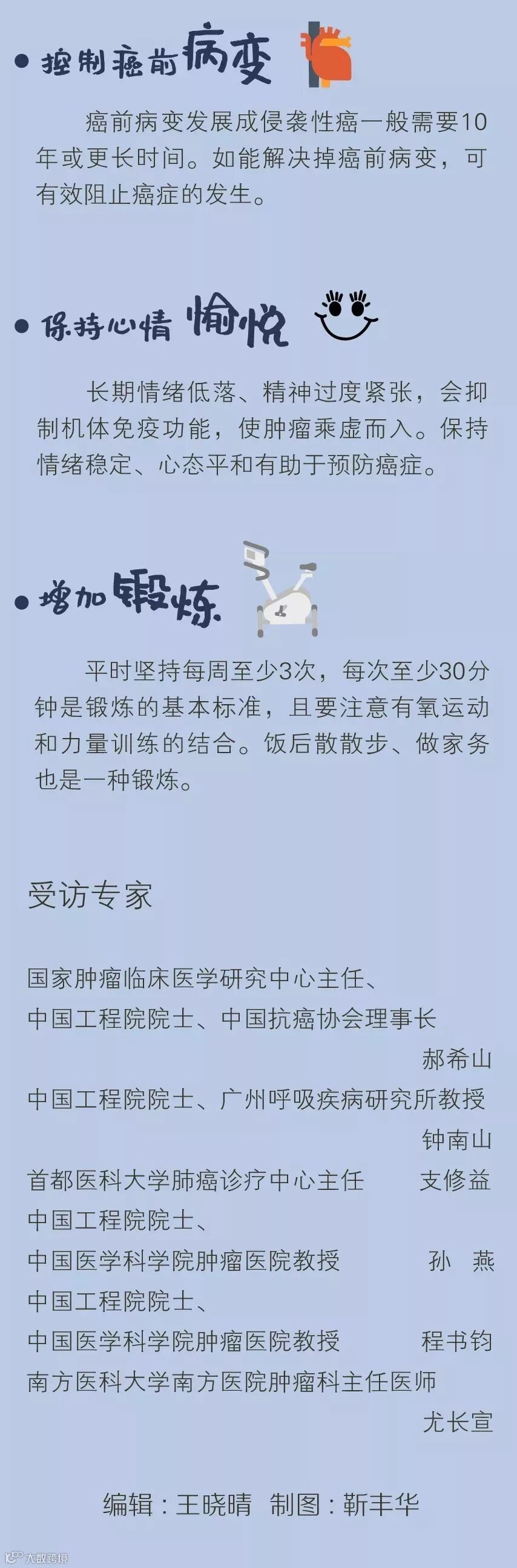 坚持健康生活方式,增强免疫力也有助防癌。注意膳食均衡、规律运动,保持合理体重,改掉作息不规律、吸烟饮酒等不良生活习惯。