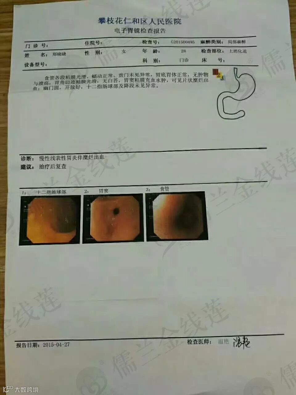 胃糜烂出血加胆囊炎喝儒兰金线莲好转,复查后正常。