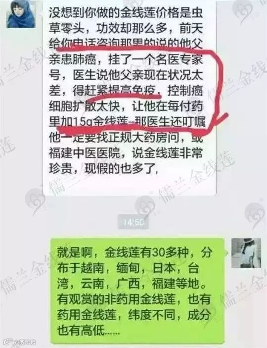 名医专家说肺癌的父亲需要赶紧提高免疫力,控制癌细胞扩散,让他每付药需要另外加15g金线莲。而且交代一定要去正规的地方买,不然假冒的太多。