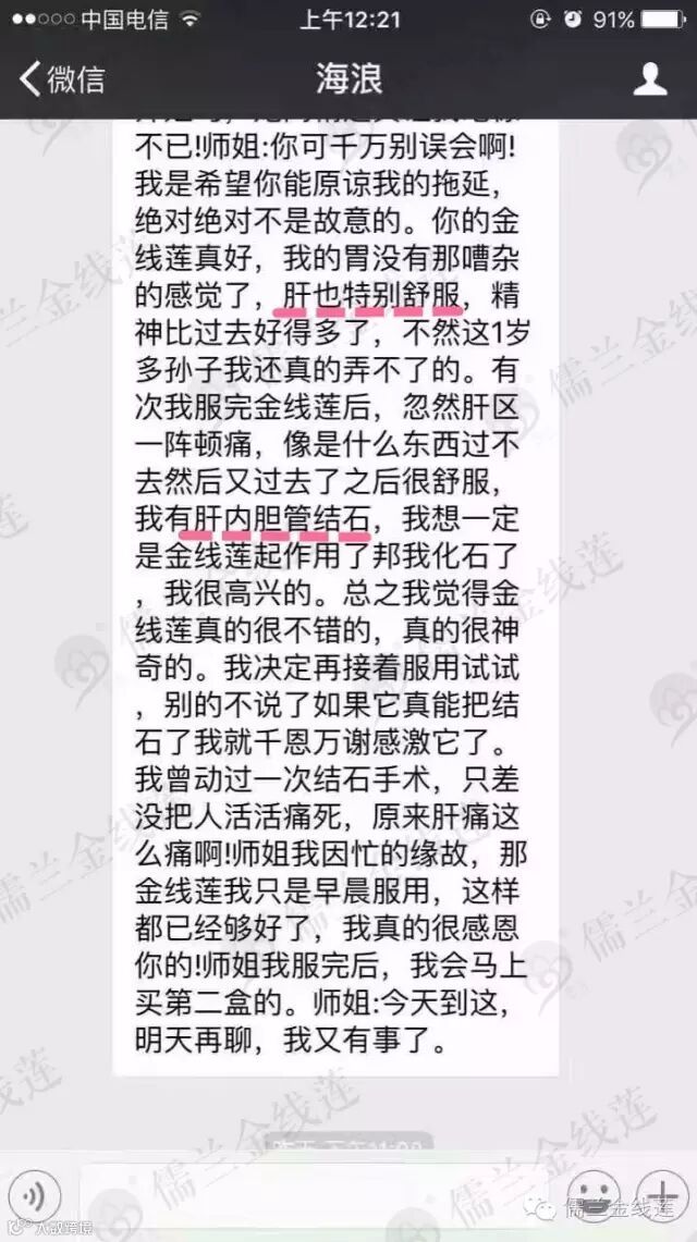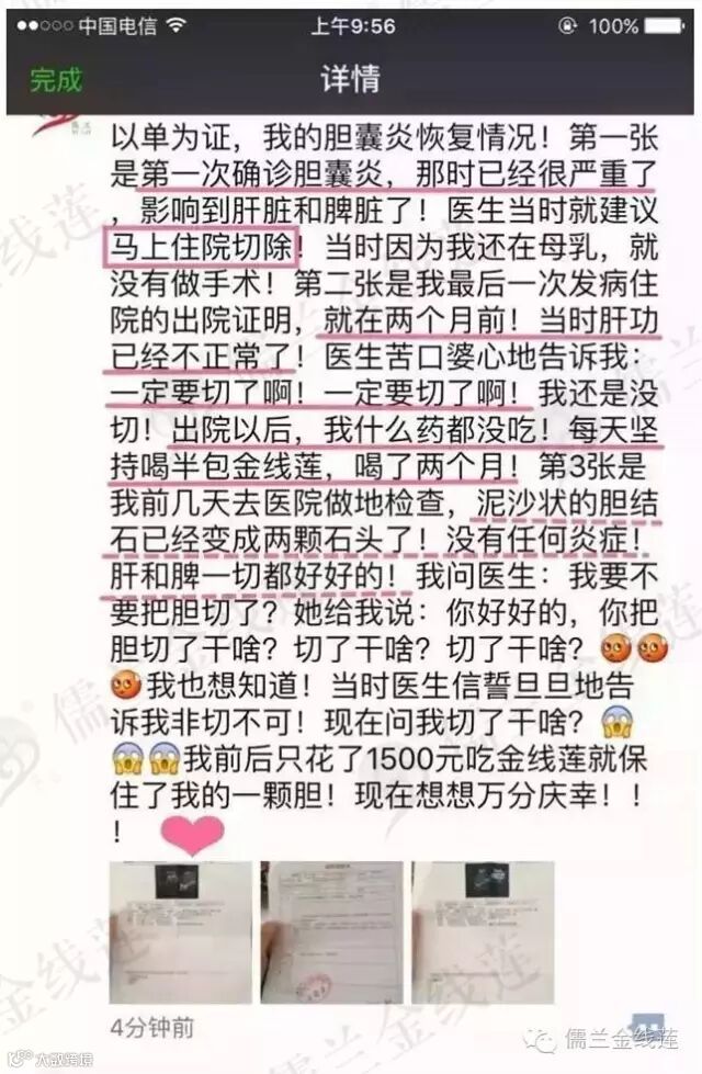 胆囊炎疼痛,坚持一个月早晚一包儒兰金线莲超微粉,胆囊炎症状已经消除!