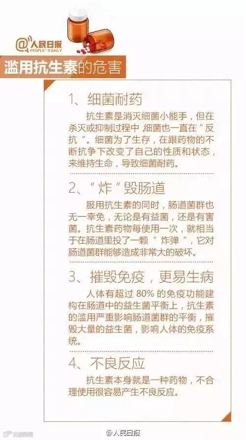 当真正遭遇细菌感染时,抗生素就可能因细菌耐药性药效减弱,病人疾病难治。此时必须加大用药剂量或联合用药,这样不但会影响治疗效果,还会使药物副作用增大,甚至引起不良反应,比如肝肾损害等。