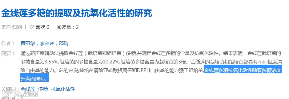 结论:金线莲多糖抗氧化活性随着多糖浓度升高而增强。
