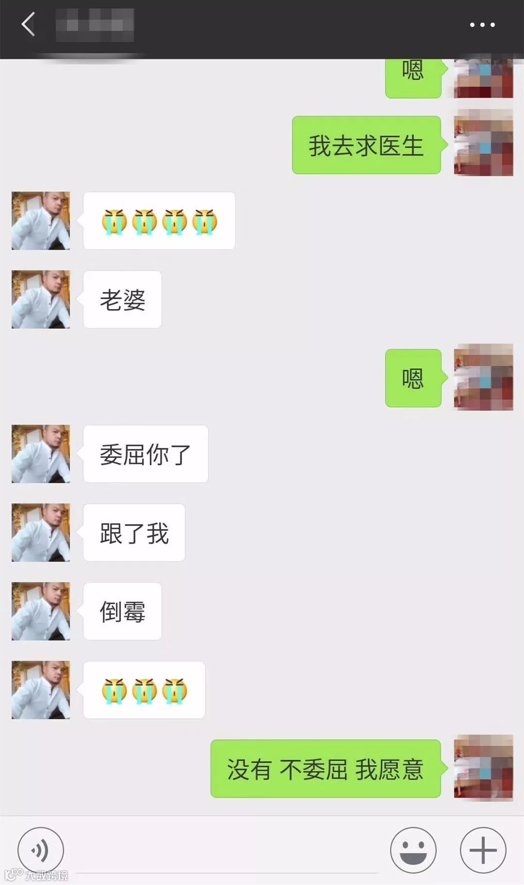 妻子回复说:“没有 不委屈 我愿意。”