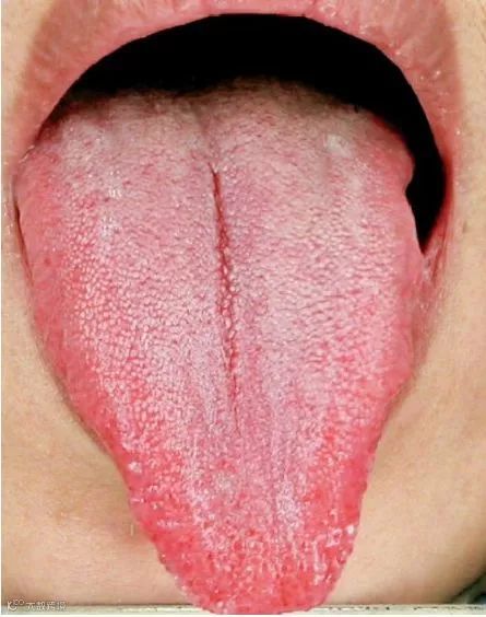 △舌头尖尖的,舌边偏红,舌中间有一条或多条纵纹,好像舌头是被折叠起来一样,是肝郁脾虚的表现。