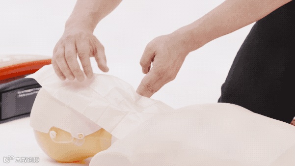 1. 打开气道,一只手放在前额上,另一只手的两根手指放在下颌骨上,使用仰头提颏的方法,打开气道。