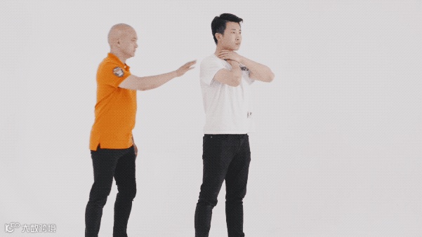 1. 把两个手臂伸直,手肘不要弯曲。双手紧扣,掌根相叠,手臂会像一个“深V领”。