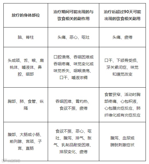 ▲表:放疗的相关副作用